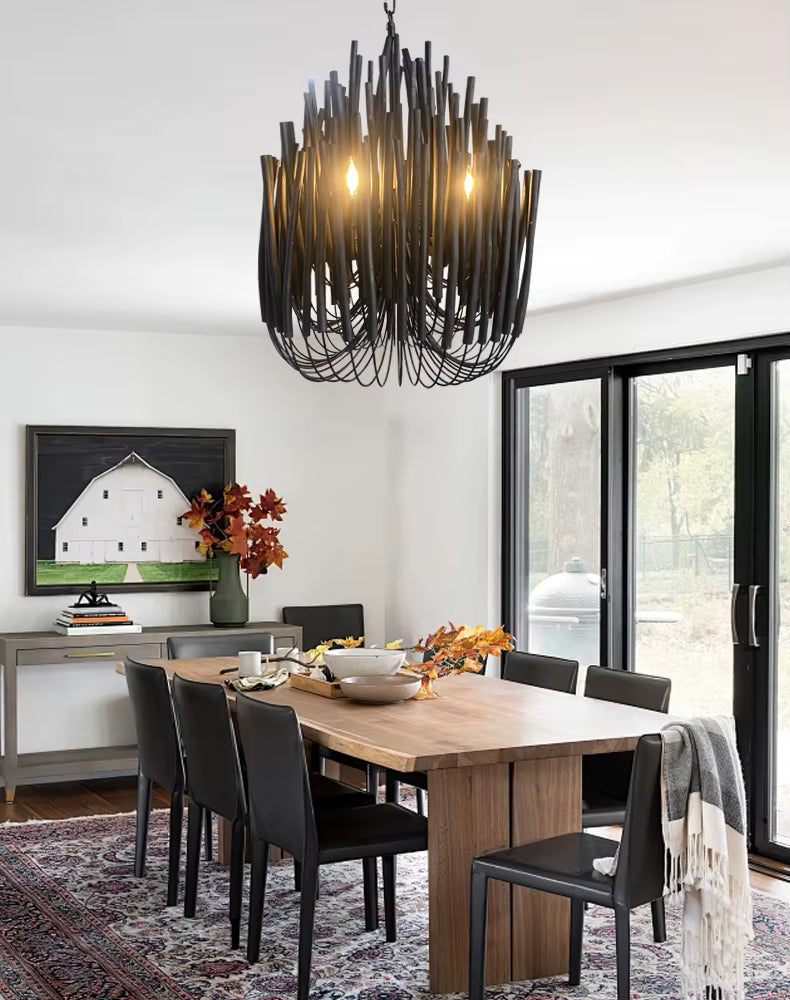 TOPIAS is a true testament to the artistry of woodcraft. Its gracefully curving beams intertwine to create a mesmerizing, symmetrical form. As the centerpiece of your room, Topias casts a soft, ambient glow that bathes your surroundings in a warm and welcoming light.