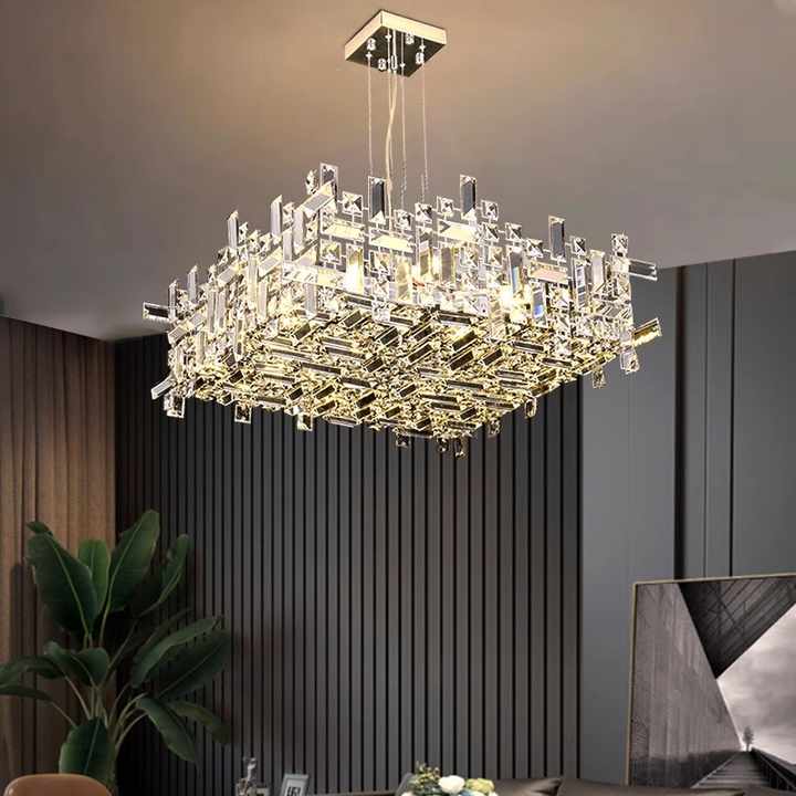 Its stainless steel body ensures lasting durability and visual clarity, while the chrome finish gives it a sophisticated edge. The floating square form gives it an architectural presence while maintaining visual lightness. This is not just a chandelier—it’s a piece of illuminated sculpture.