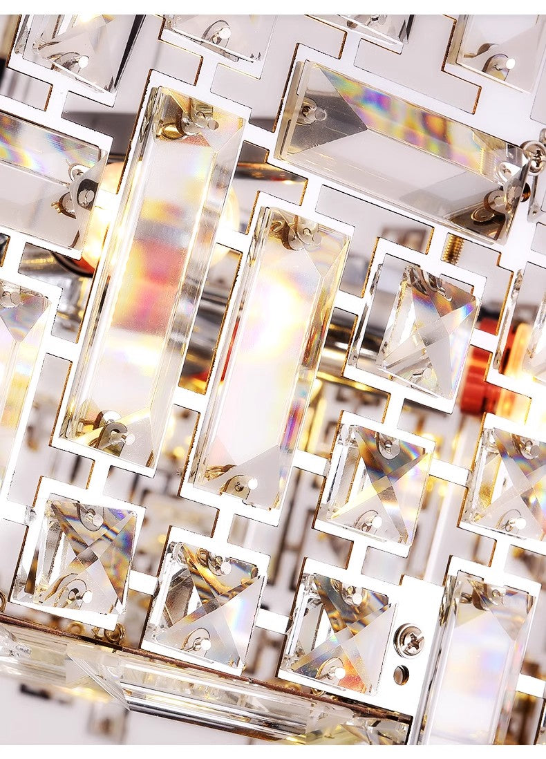 With rows of reflective glass tiles set in stainless steel, this linear chandelier emits light in every direction—glimmering like a crystal river suspended midair. Perfect for those who seek architectural lighting with a high-luxury edge.
